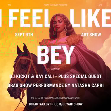 "I FEEL LIKE BEY" is an art show that celebrates the life and work of Beyoncé. The show will feature art, music, and photography inspired by Beyoncé. It will be held on September 9, 2023, from 6 PM to 10 PM at a fully accessible venue in Austin, TX. Tickets are limited and can be purchased on Eventbrite.